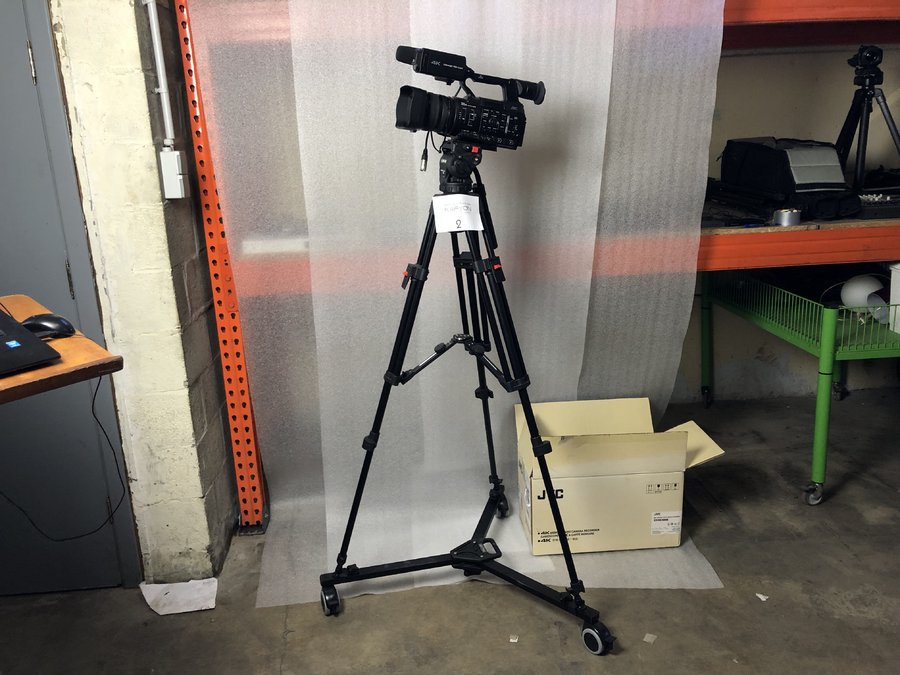 Lotnummer 2 professionele videocamera met toebehoren professionele videocamera JVC GY-HC500E met toebehoren zoals oplader en microfoon, met Cartoni focus 8 statief en Cartoni voet op wielen Deze veiling is afgelopen