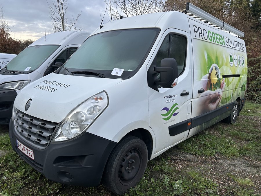 lichte vracht Renault Master bouwjaar 21/09/2011, chasnr. VF1MAF4CE45831475(01), 1 sleutels, met gelijkvormigheidsattest, met inschrijvingsbewijs Deel I en deel II, motorinhoud 2299, motorvermogen 92 kw, milieuklasse Euro 4, defecte remmen, krassen rondom voeruig, met bagagedrager en ingericht met vakkenkasten, platte accu