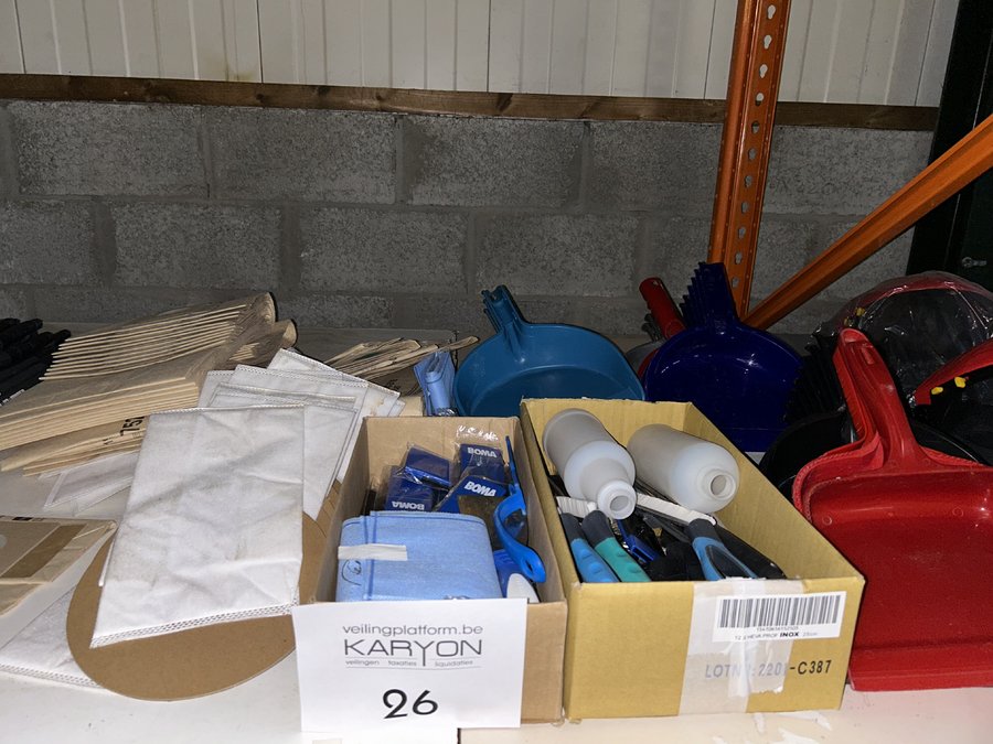 Lotnummer 26 poetsgerief lot poetsgerief w. vuilblikken, sofzuigerzakken enz. Deze veiling is afgelopen