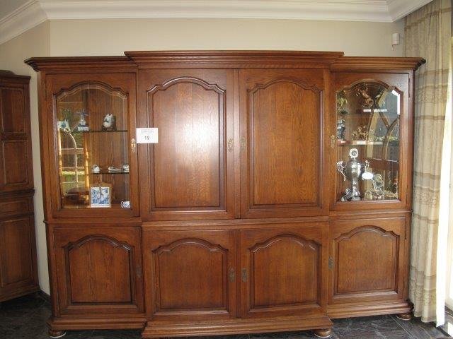 Lotnummer 12 antieke tv kast antieke tv kast met 2 vitrinedeuren en 6 deuren hoogte 215 cm breedte 280 cm Deze veiling is afgelopen
