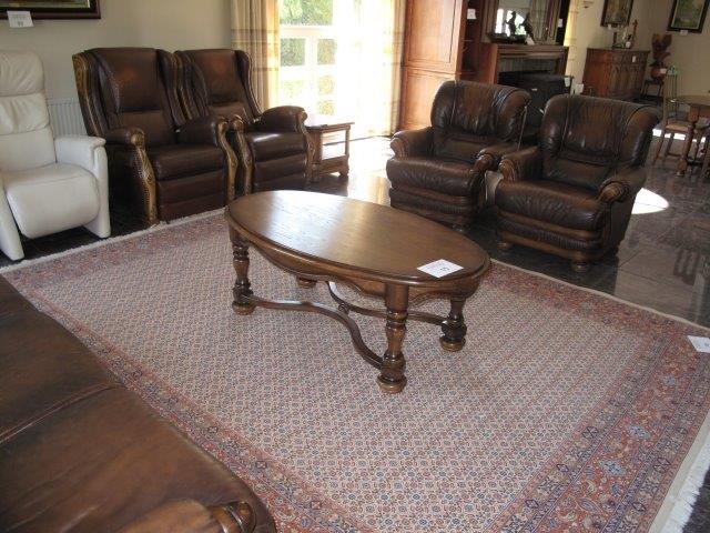 Lotnummer 15 salon salon 3 zit en 4 zetels in bruin leder (gebruiksporen) en houten salontafel Deze veiling is afgelopen