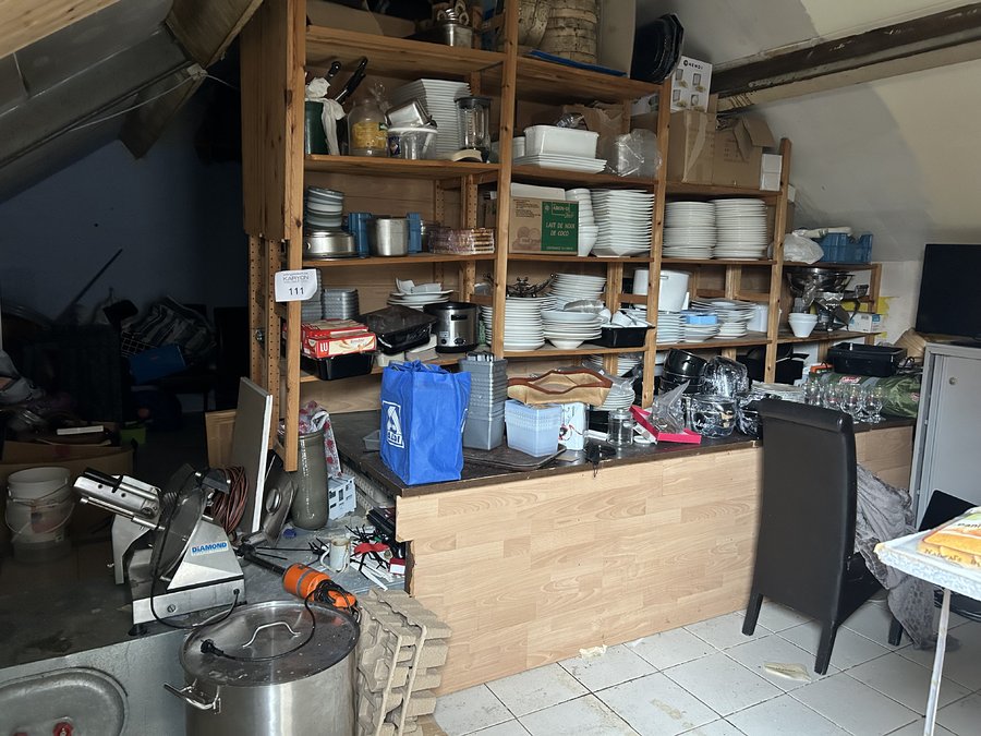inhoud lokaal w.o. vleessnijmachine en mixer ( niet werkend) en divers 1e verdieping)
