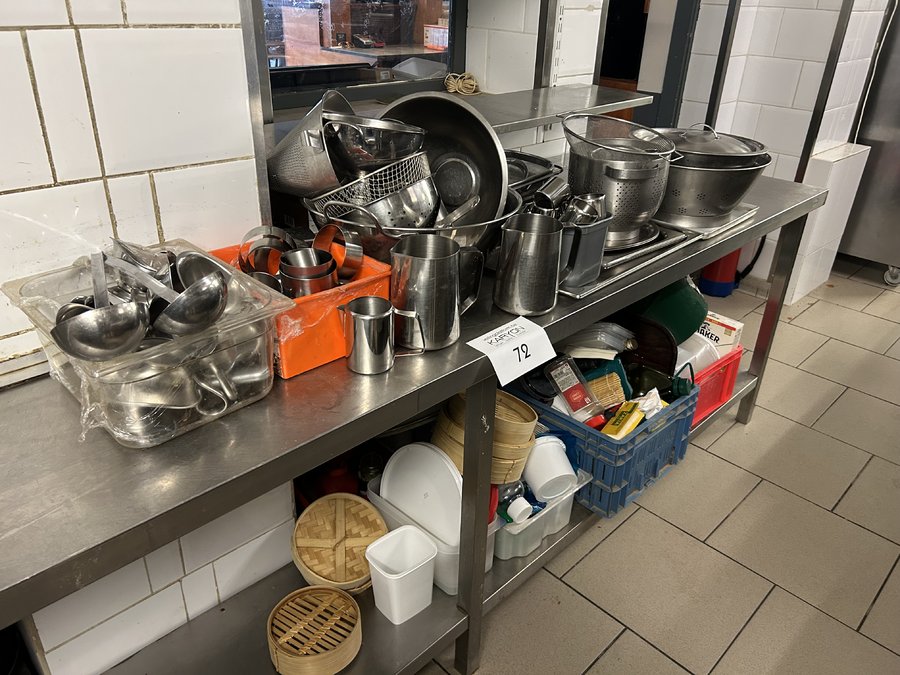 lot keukengerief w.o. schotels, kannen, bekertjes, pollepels in rvs