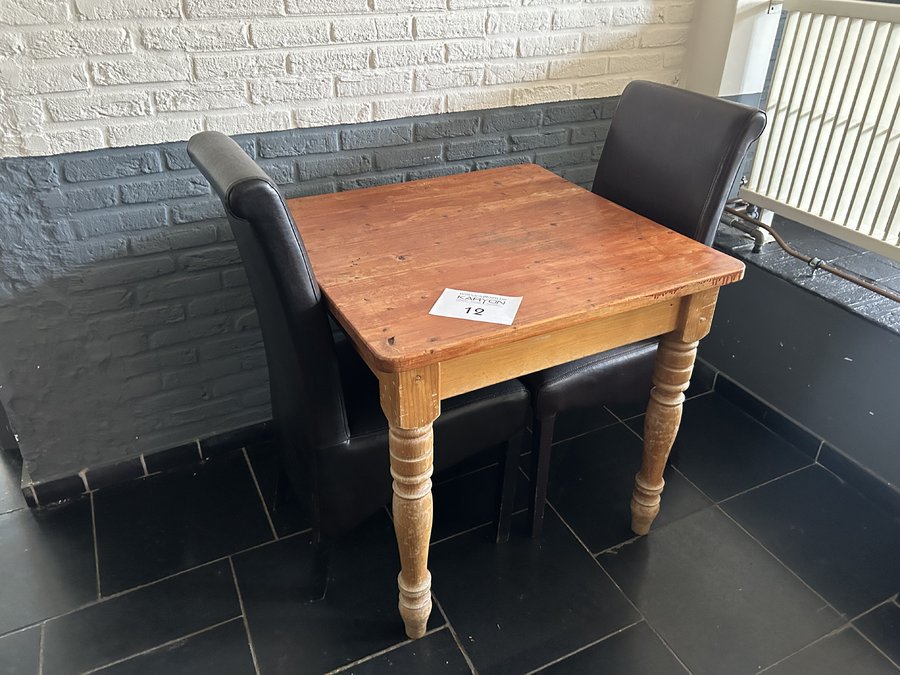 2 stoelen in bruin lederlook met vierkante houten tafel lengte 90 cm