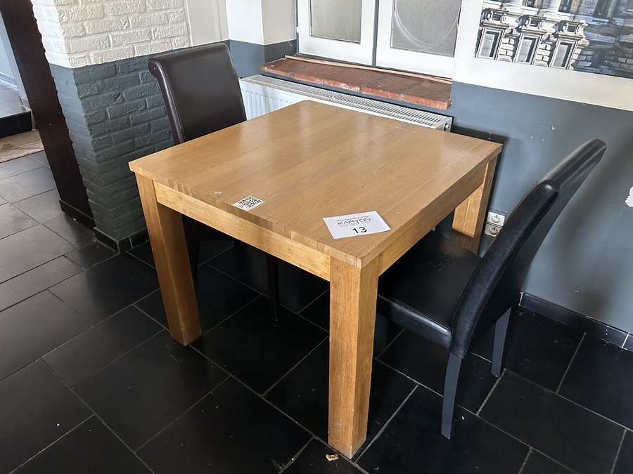 2 stoelen in bruin lederlook met vierkante houten tafel lengte 90 cm