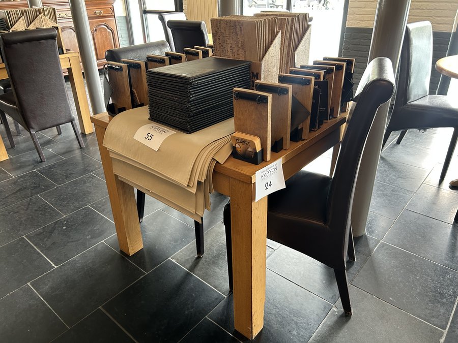 2 stoelen in bruin lederlook met vierkante houten tafel lengte 90 cm