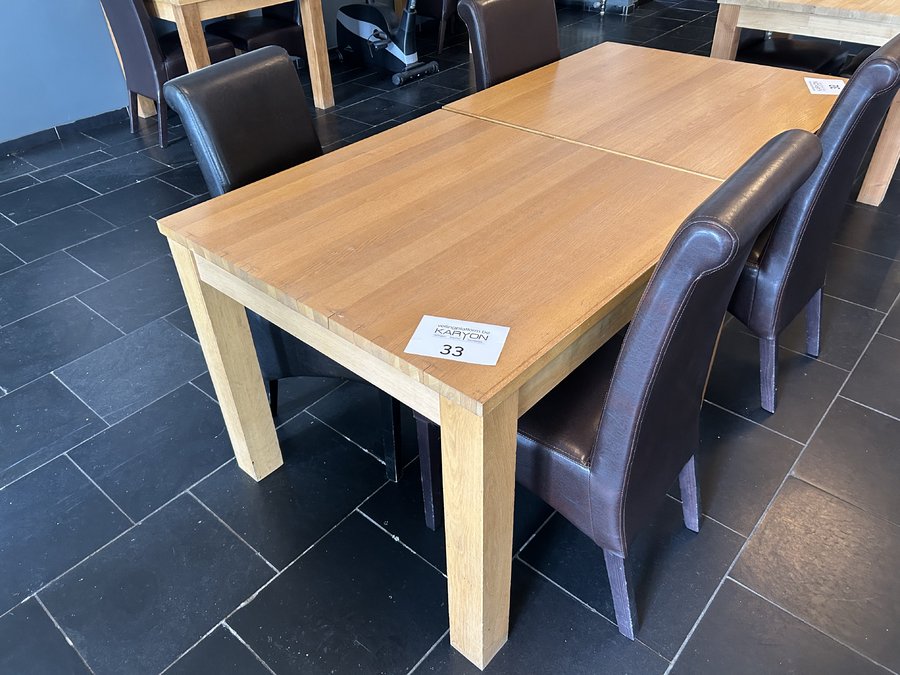 2 stoelen in bruin lederlook met vierkante houten tafel lengte 90 cm