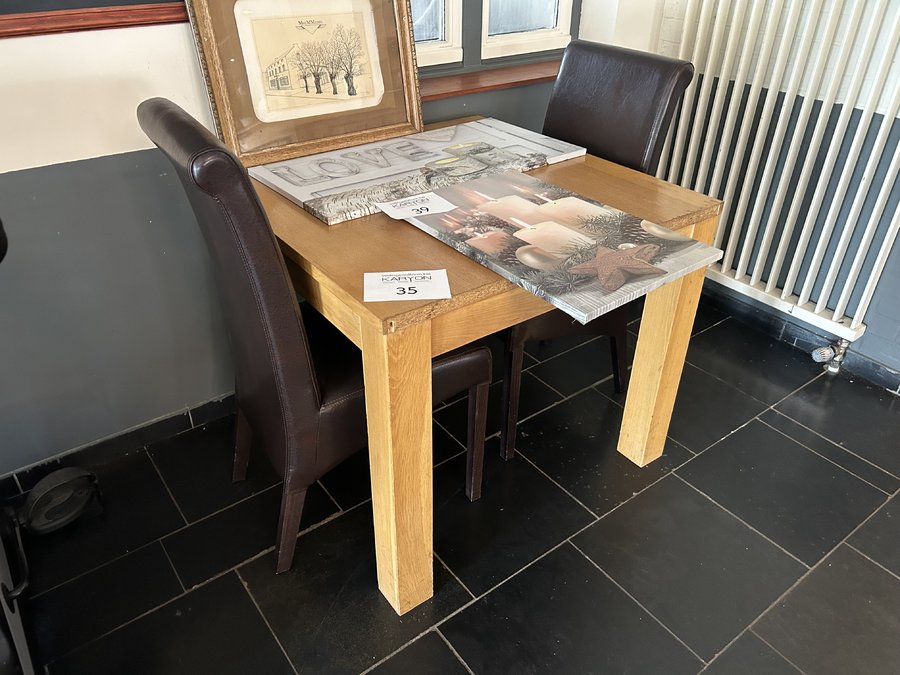 2 stoelen in bruin lederlook met vierkante houten tafel lengte 90 cm