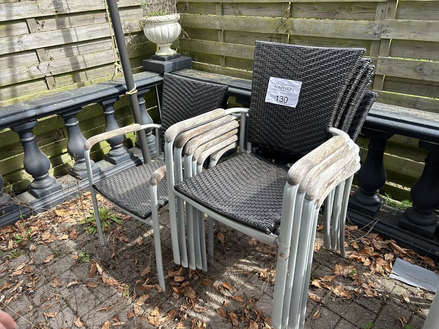 7 terrasstoelen met houten leuning in gevlochten kunsstof