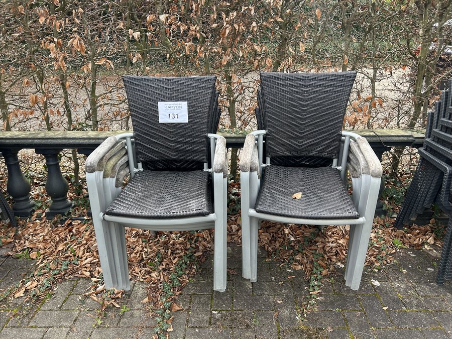 12 terrastoelen met houten leuning in gevlochten kunststof
