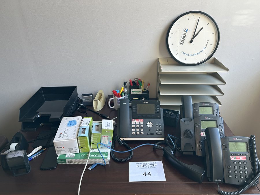 4 telefoontoestellen en divers kantoormateriaal