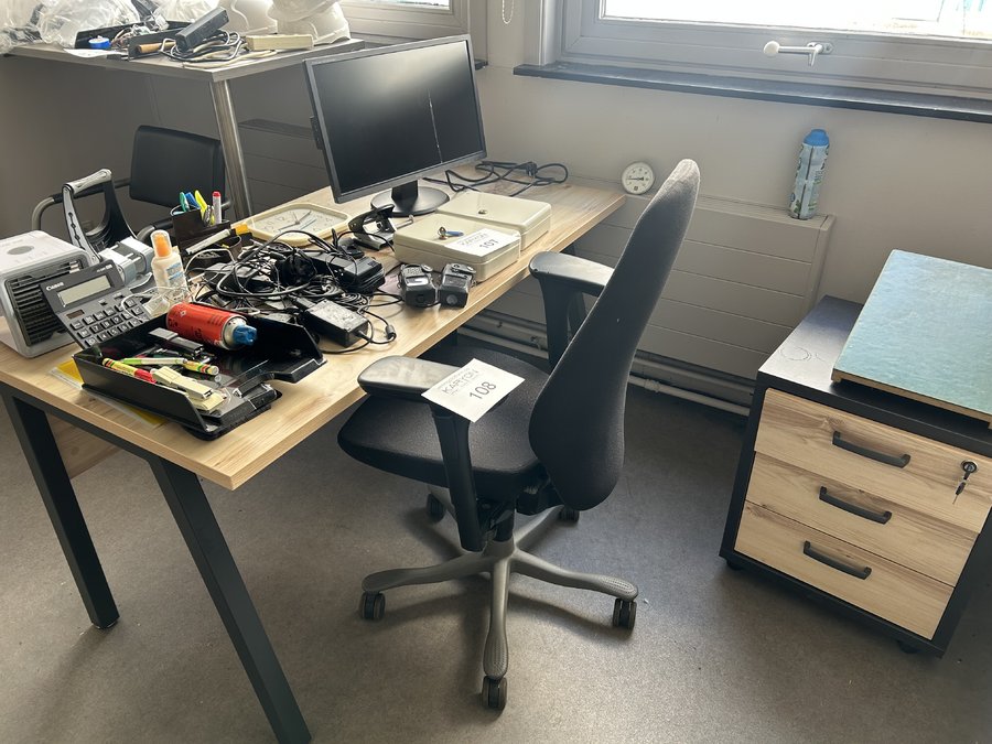 bureau met ladenblokje en bureaustoel