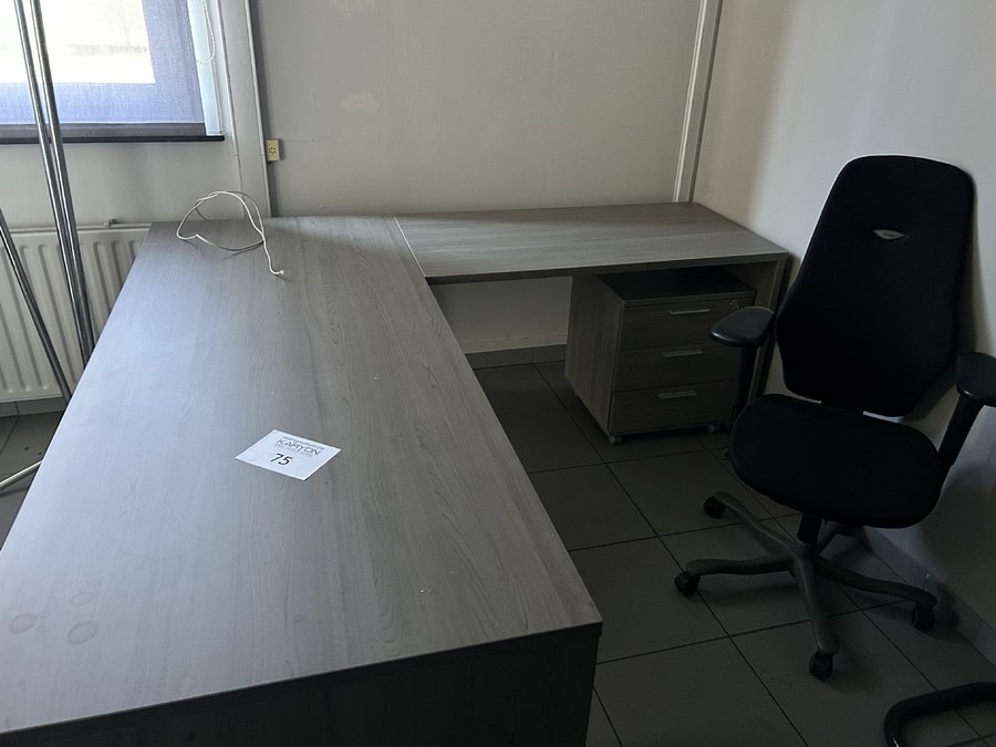 hoekbureau met ladenblokje en bureaustoel