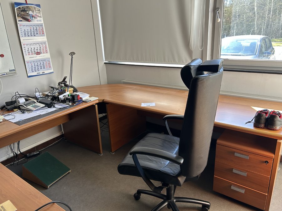 hoekbureau met ladenblokje en bureaustoel