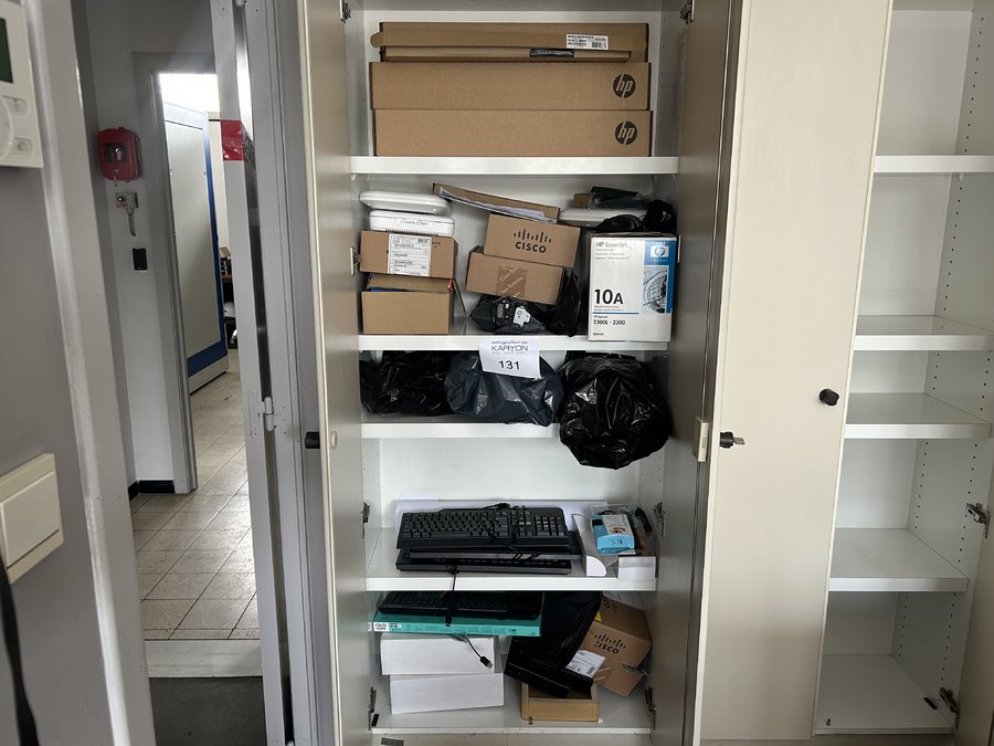 inhoud kast met waaronder toners, en Cisco routers