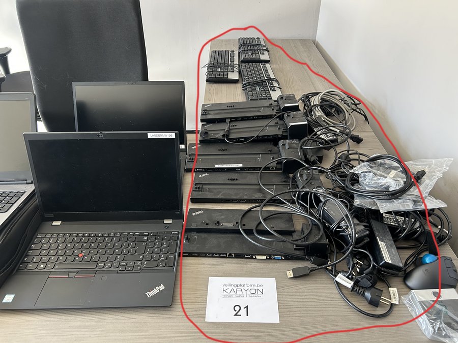 laadstations HP, 3 toetsenborden en diverse laadkabels