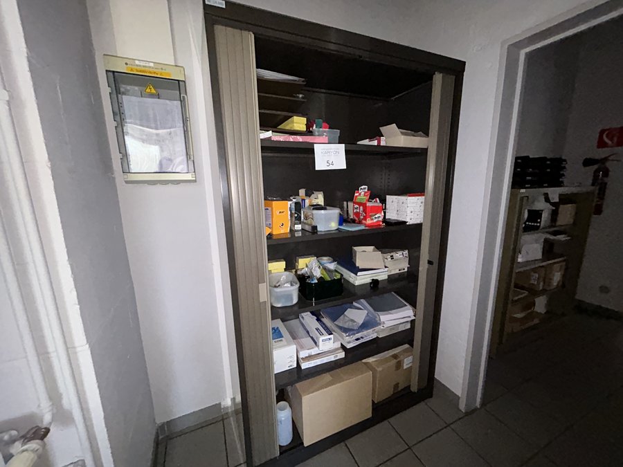metalen dossierkast met inhoud waaronder divers kantoormateriaal